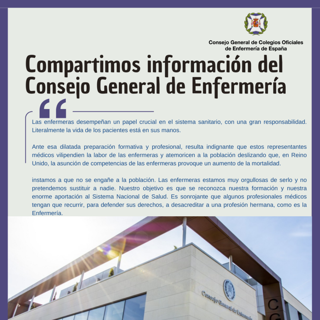 El CGE considera intolerables los últimos ataques de los representantes médicos a la profesionalidad de las enfermeras