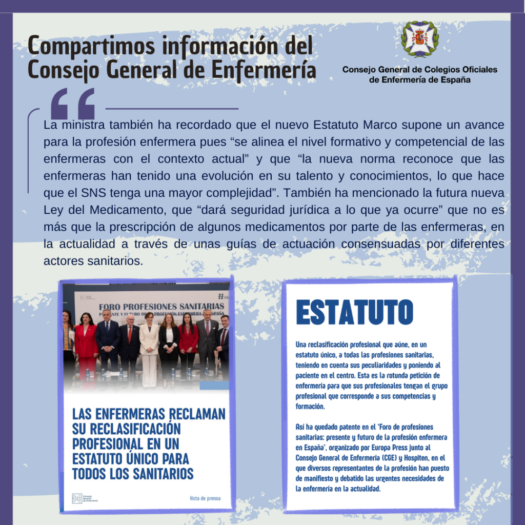- Mónica García ha recordado que el nuevo Estatuto Marco supone un avance para la profesión enfermera pues “se alinean el nivel formativo y competencial de las enfermeras con el contexto actual” y que “la nueva norma reconoce que las enfermeras han tenido una evolución en su talento y conocimientos, lo que hace que el SNS tenga una mayor complejidad”.
