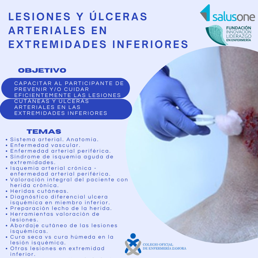 Ser capaz de prevenir y/o cuidar eficientemente las lesiones cutáneas y úlceras arteriales en las extremidades inferiores.